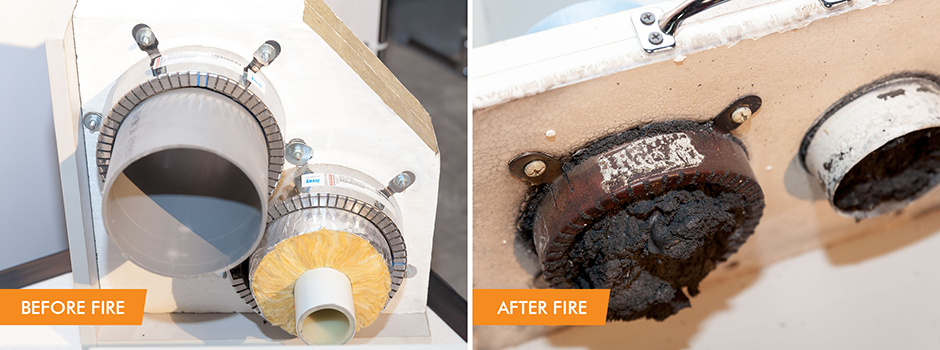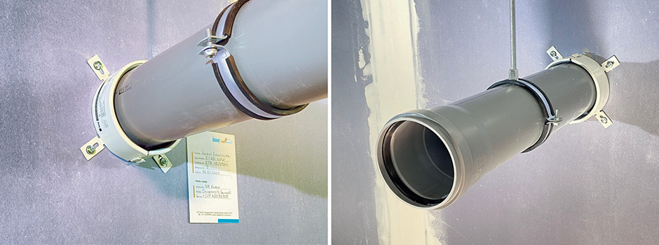 So – what is Knauf Firecollar and why is it a great choice for pipe protection? Firecollar is a pipe closure device, used to form penetration seals where combustible pipes, cables and metal pipes with insulation penetrate walls and floors.