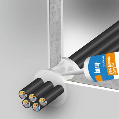 Knauf Fire protection acrylic - FPA is designed to prevent the spread of fire and smoke through joints and openings in fire rated walls and floors including openings formed around building service penetrations. It will also maintain the acoustic design performance in walls and floors.