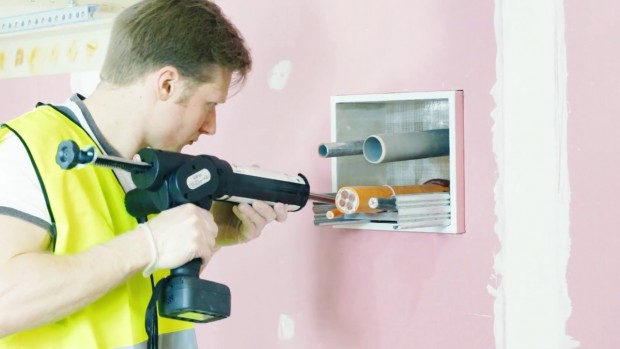Knauf Fire Protection Foam - FPF can be used as a sealing system for cables, cable trays, combustible and non-combustible pipes in walls and floors. It is particularly characterized by its easy processing. It can be used as a mixed penetration seal (EI 90), as well as a pure cable penetration seal (EI 120).