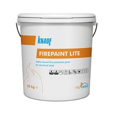 Knauf FirePaint Lite is a matt white, waterborne and halogen-free, intumescent coating. In the event of a fire, the paint is transformed into a thick, fine-pored foam layer that delays or prevents the flame spread. Knauf FirePainLite is used indoors in systems for fire insulation of structural steelworks.