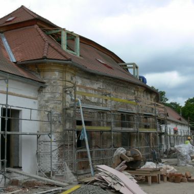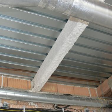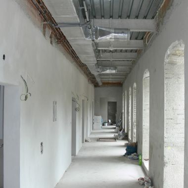 During the reconstruction of the Olomouc military hospital, Knauf Vermiplaster was chosen to insure fire protection of the historical complex. Knauf Vermiplaster is a gypsum-based plaster that is applied by spraying and is designed for fire protection, especially for steel beams and ceilings, slabs of trapezoidal sheet and concrete, reinforced concrete and non-bearing walls, ceilings, columns and beams. In the event of a fire, the plaster has the task of securing the load-bearing capacity of the structural elements for a certain time. The range of fire resistance ranges from 30 to 120 minutes for steel and steel-concrete composite structures and up to 180 minutes for reinforced concrete structures. The main reason for choosing this plaster is the rate of application, which is done mechanically. The workflow is so much faster than, for example, in laying beams with fire-resistant plates. At the same time, this technology is also significantly cheaper.